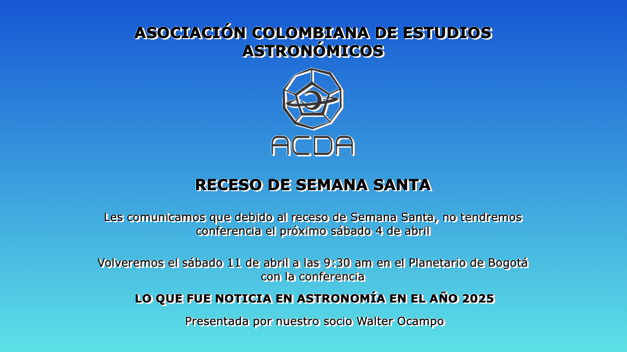 Si quieres ser socio de ACDA descarga el formulario adjunto, diligéncialo y envíalo a contacto@acda.info o llévalo físicamente a la reunión del sábado a las 10 A.M. (GMT-5) en el Planetario de Bogotá y entrégalo a uno de nuestros socios asistentes.