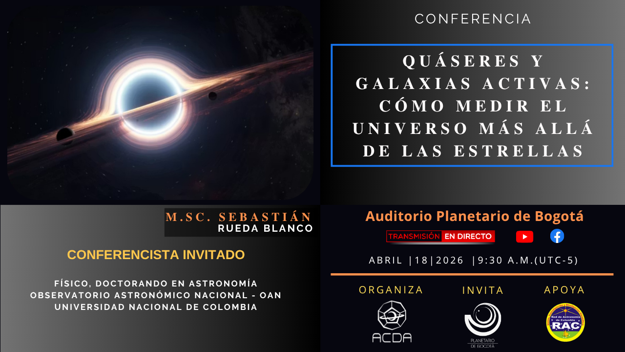En esta charla se presentarán además observaciones recientes que ilustran cómo los quásares y las galaxias activas pueden actuar como herramientas interesantes para medir la expansión del universo y aportar información clave sobre su dinámica. Así pues, se discutirá́ el papel de estos objetos en la cosmología moderna y su potencial para ayudar a resolver algunas de las preguntas fundamentales sobre el universo.